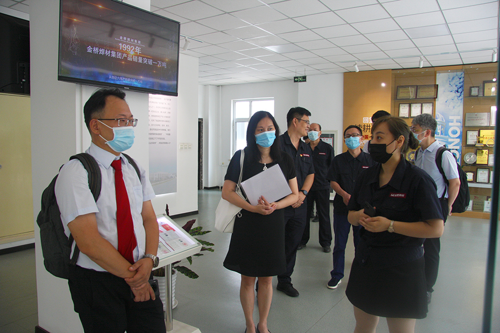 簽約儀式開(kāi)始前,肖副總陪同童彥君總經(jīng)理一行參觀(guān)了集團(tuán)理化實(shí)驗(yàn)室、高速鍍車(chē)間、焊接培訓(xùn)基地及企業(yè)展廳,詳細(xì)了解了金橋焊材集團(tuán)的發(fā)展情況、生產(chǎn)布局及工藝。童彥君總經(jīng)理表示,對(duì)侯立尊老總的家國(guó)情懷、創(chuàng)業(yè)事跡深感敬佩,也對(duì)金橋焊材集團(tuán)不忘初心,專(zhuān)注本業(yè)的戰(zhàn)略規(guī)劃給予高度贊揚(yáng)。