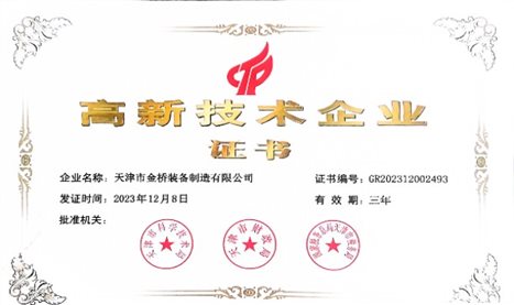 2023年,天津市金橋裝備制造有限公司自主成立申報(bào)團(tuán)隊(duì),在集團(tuán)相關(guān)部門的支持下,認(rèn)真解讀政策文件,及時(shí)準(zhǔn)備各項(xiàng)材料,最終一次性成功通過(guò)國(guó)家科技部門認(rèn)定,順利通過(guò)國(guó)家高新技術(shù)企業(yè)認(rèn)定,正式邁入國(guó)家高新技術(shù)企業(yè)行列。同期成功被評(píng)定為 “2023年雛鷹企業(yè)”、“2023年科技型中小企業(yè)”。