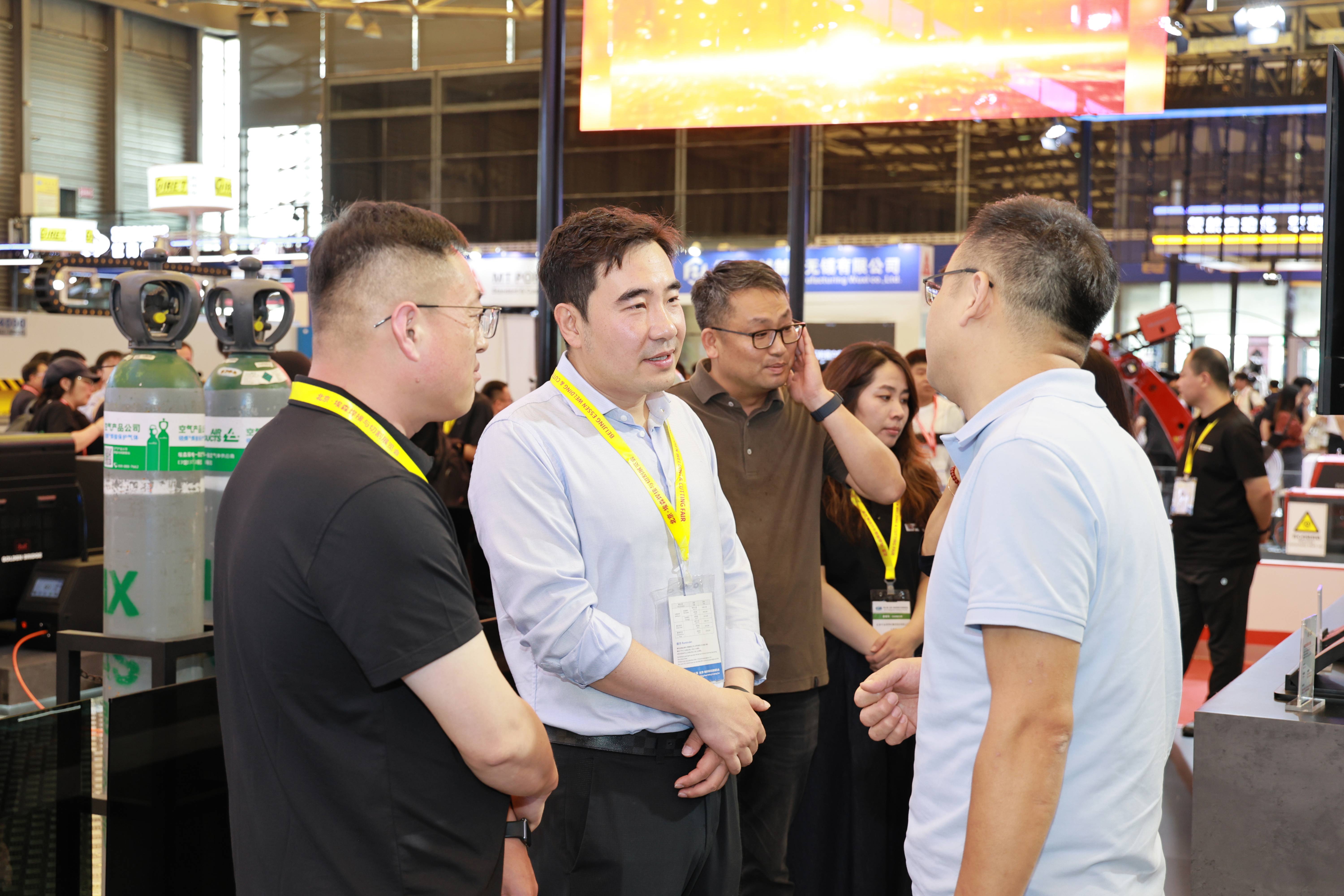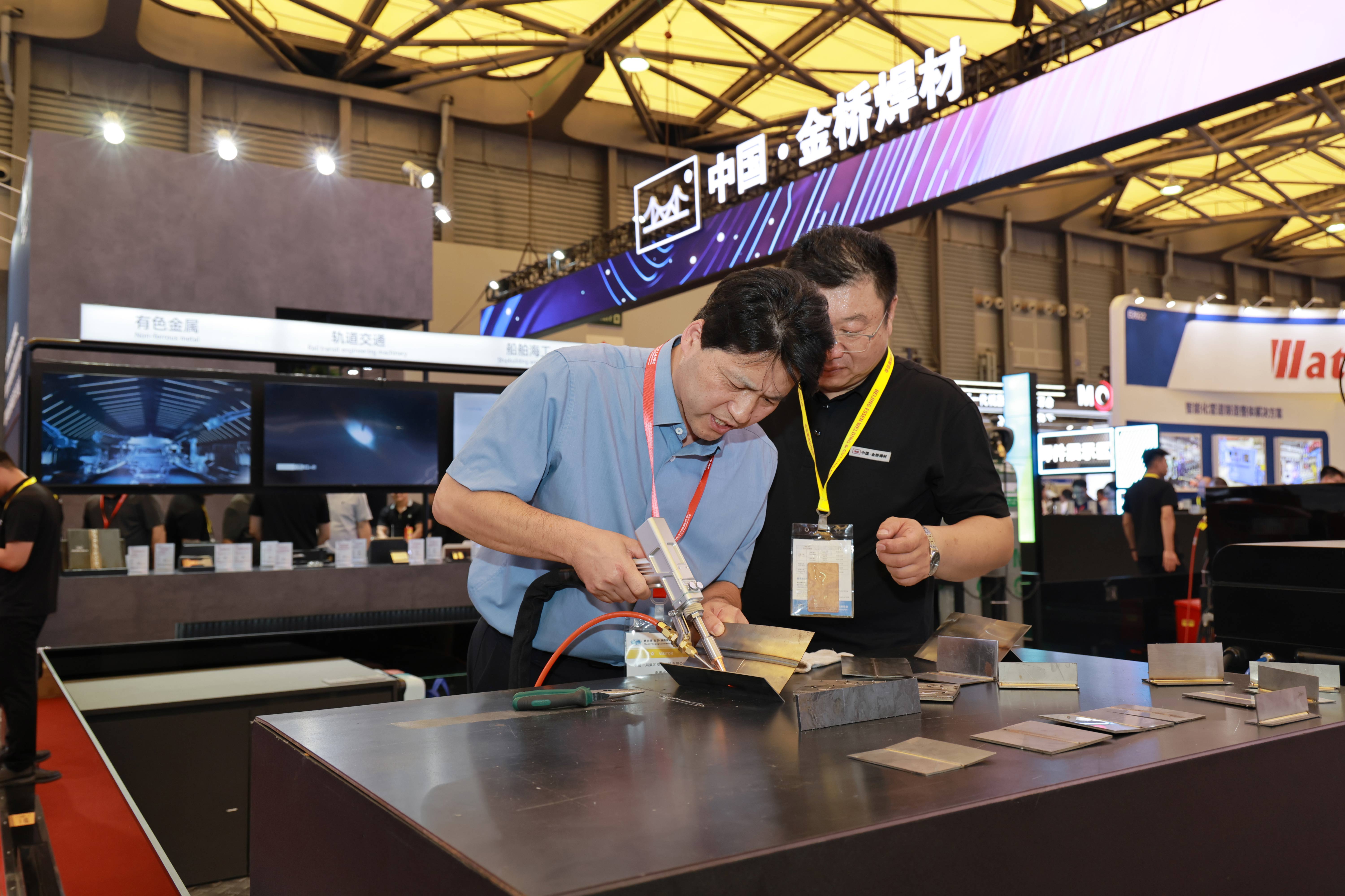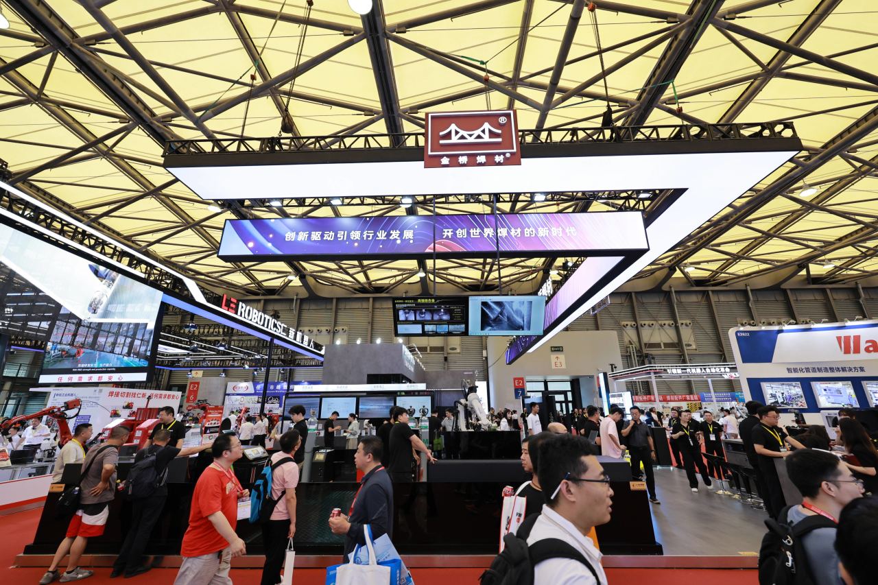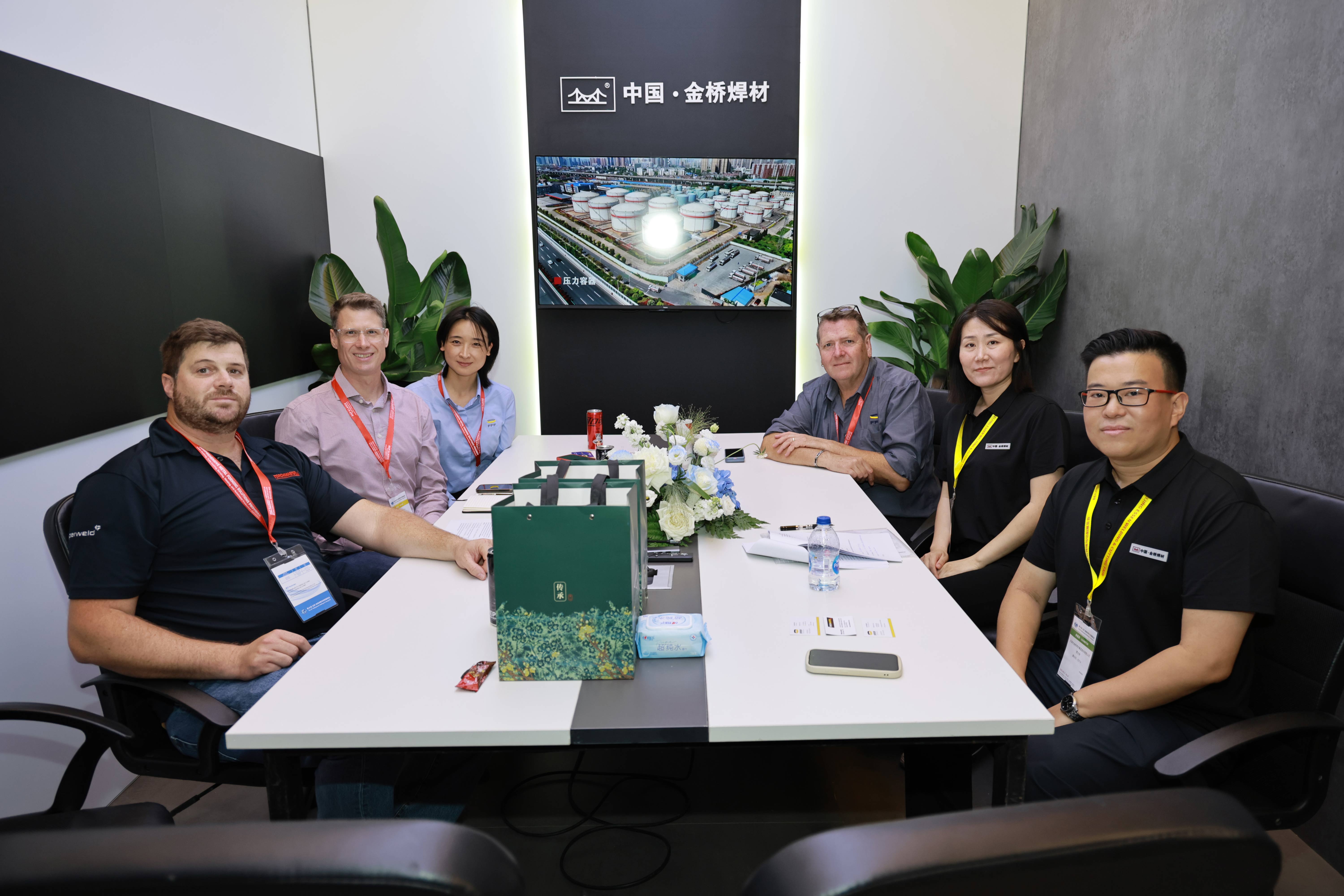 四大行業(yè)展示區(qū)、試焊區(qū)和焊件展示區(qū)人流如織,熱鬧非凡。現(xiàn)場客戶咨詢了高強鋼焊接工藝涵蓋的方面及熔斷效果、成型效果,鋁合金雙脈沖工藝在汽車底盤等方面的應用等情況。船舶行業(yè)客戶詢問了JQ.YJ503MX-1高效金屬粉芯型藥芯焊絲的產(chǎn)品情況,對產(chǎn)品性能和價格進行了接洽溝通,約定后期可進行試用。家電行業(yè)客戶咨詢了銀釬料產(chǎn)品,表示后續(xù)會大力跟進開發(fā),集團將根據(jù)客戶需求進行工藝改善與優(yōu)化。來自巴西的國際客戶詢問了無鍍銅實心焊絲產(chǎn)品,并對集團高端藥芯焊絲產(chǎn)品密切關注,表現(xiàn)出進一步合作意向。來自斯洛伐克的老客戶詢問了高端實心焊絲、藥芯焊絲產(chǎn)品及金橋“焊接一體化”服務,表示會繼續(xù)加強合作,促進與金橋焊材的合作共贏。