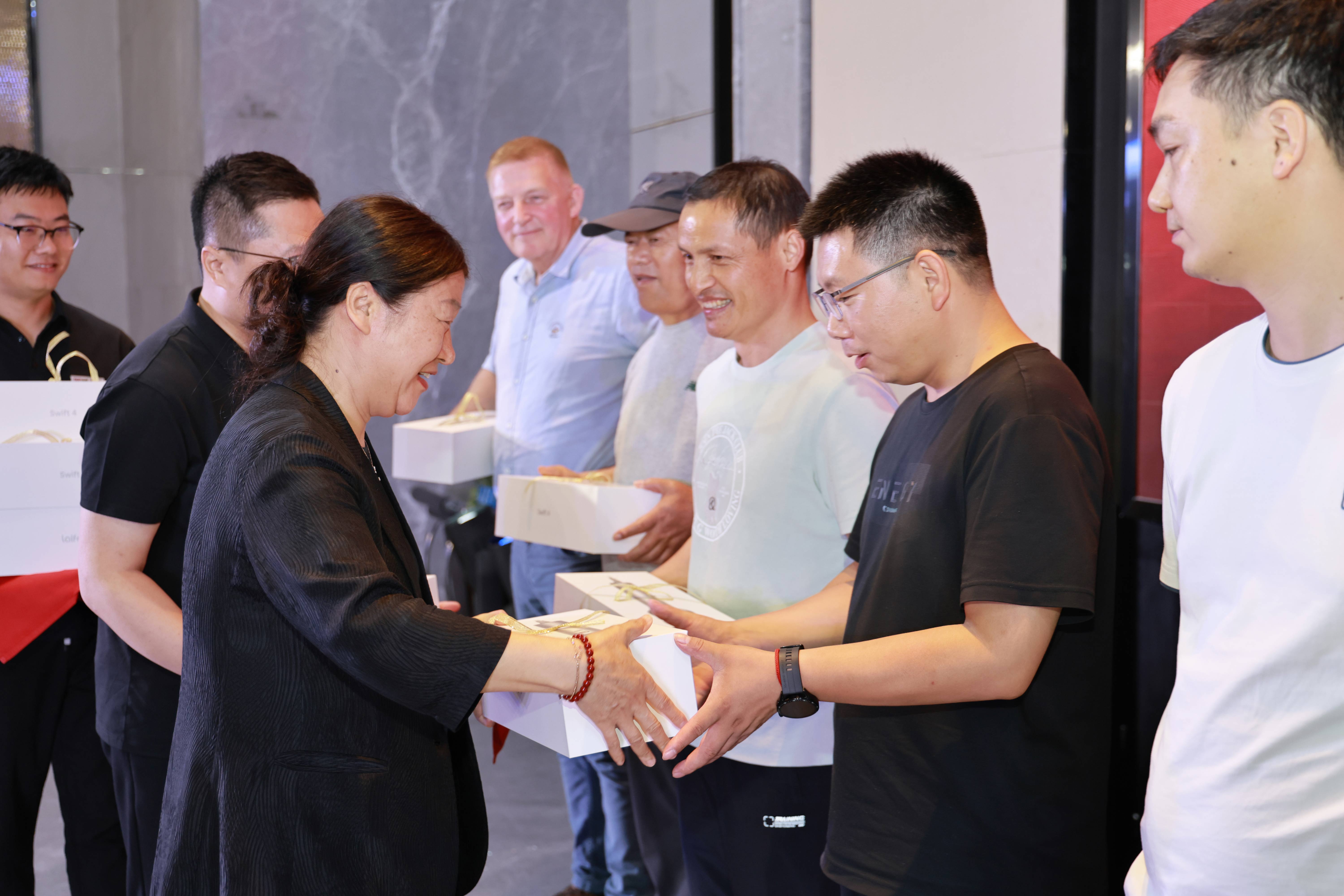 ? 晚宴進(jìn)行中,精心設(shè)計(jì)的互動(dòng)環(huán)節(jié)將氣氛不斷推向高潮。今晚的送驚喜環(huán)節(jié),集團(tuán)領(lǐng)導(dǎo)為經(jīng)銷商送上了真誠(chéng)的生日祝福和禮品。隨之而來(lái)的一輪輪大屏抽獎(jiǎng)活動(dòng),更是讓現(xiàn)場(chǎng)歡呼迭起,驚喜連連。晚宴在暖心愉悅的氛圍中接近尾聲。