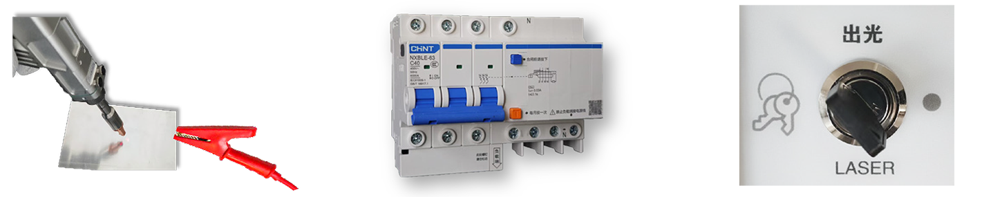 出光口接觸夾有安全地夾的工件時(shí)才符合出光條件,防止激光對(duì)工件以外的物體照射。符合T/CWAN 0064-2022中13.2要求。漏電保護(hù):